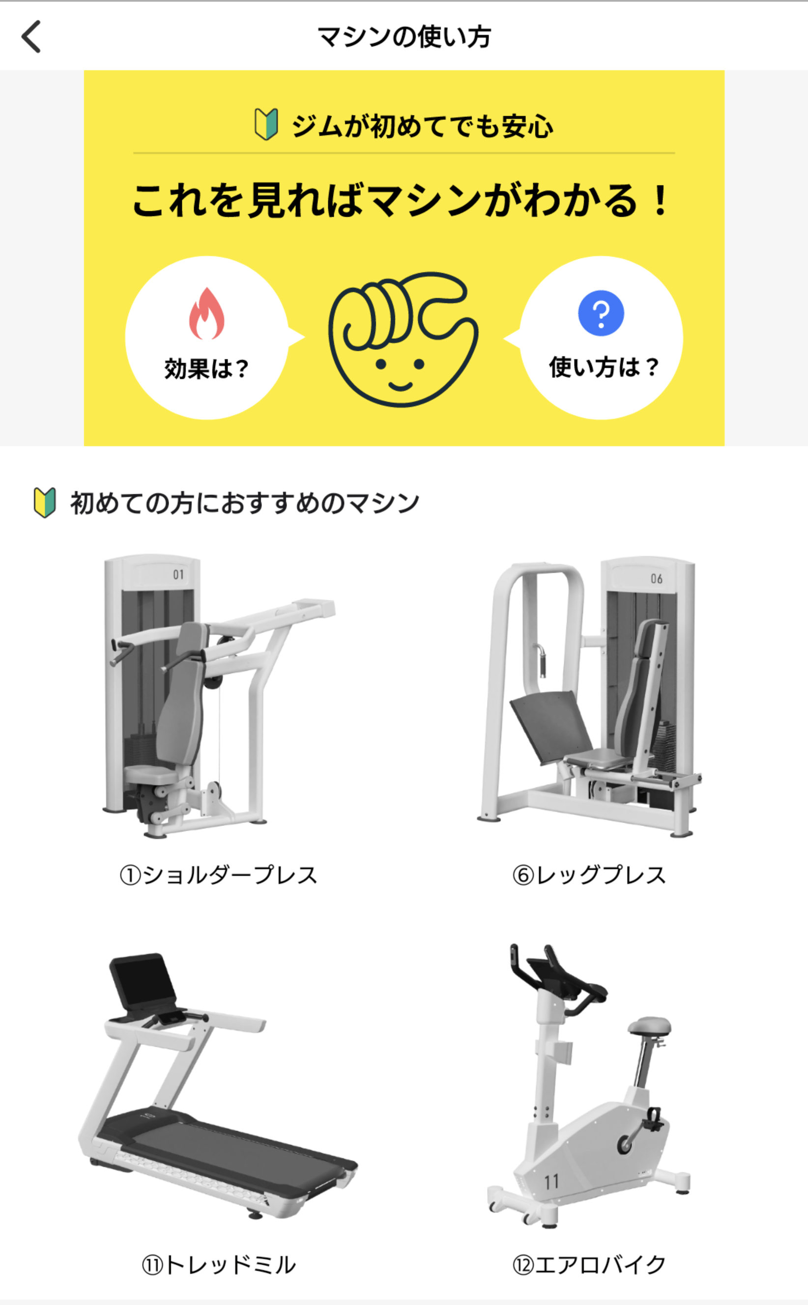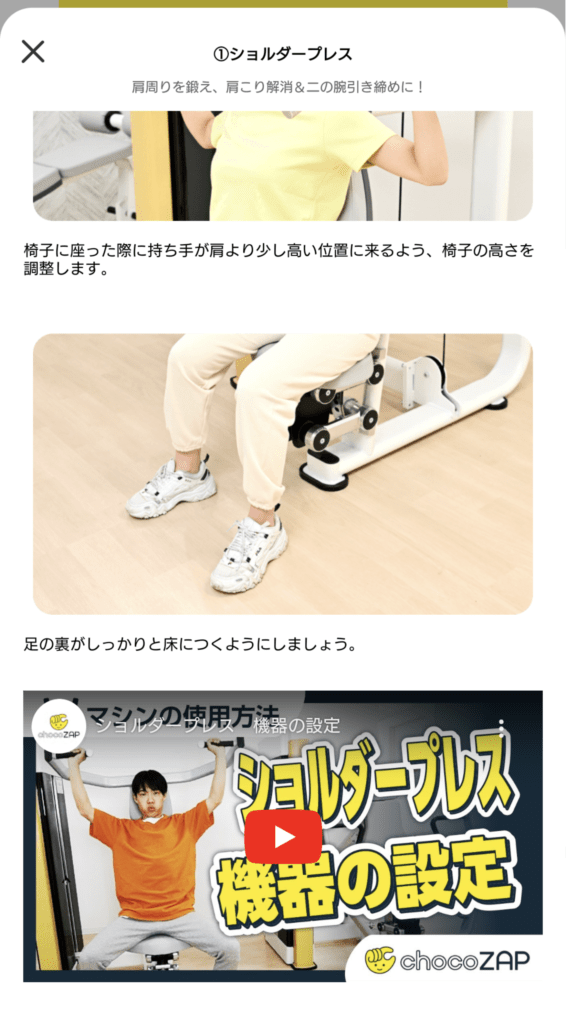 アプリ内にマシンや脱毛機などの使い方がそれぞれ解説されています。