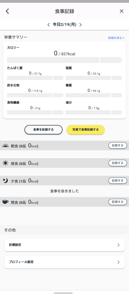 - 一日の食事が記録できる