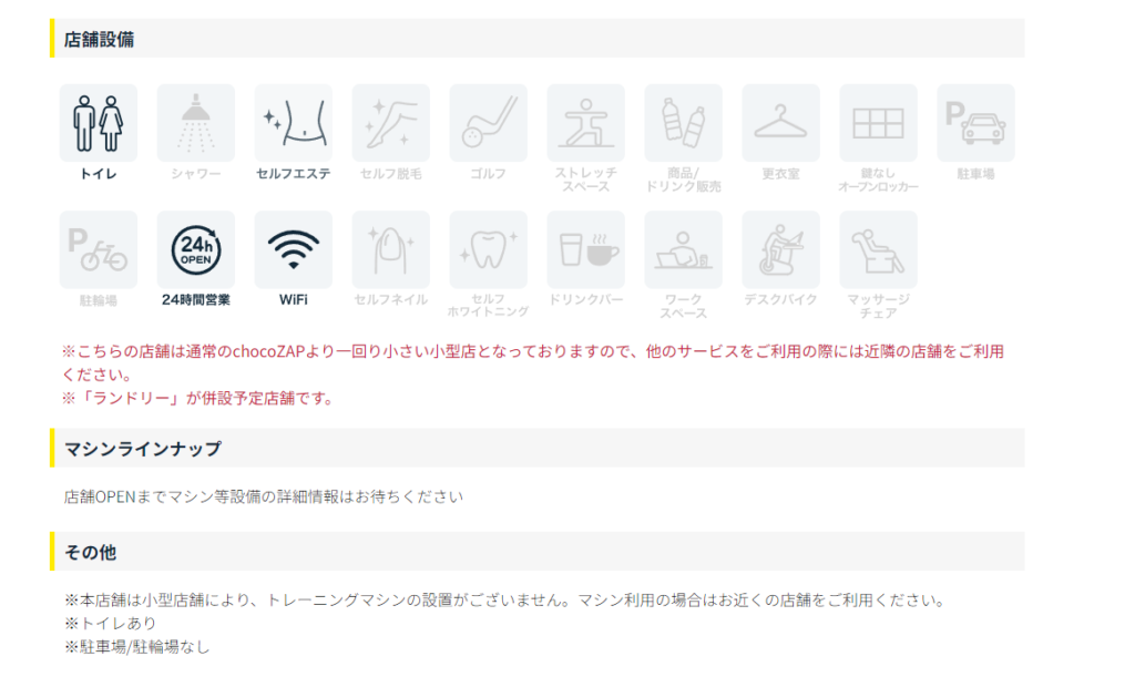 ジムなしの施設はランドリー、セルフエステのみの設置されています。