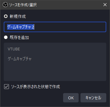 [新規作成]でお好みの名前をつけて[OK]を押下します。