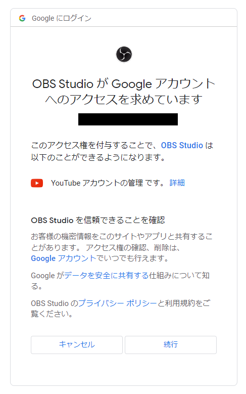 プライバシーポリシーと利用規約を同意する場合は続行をしてください。