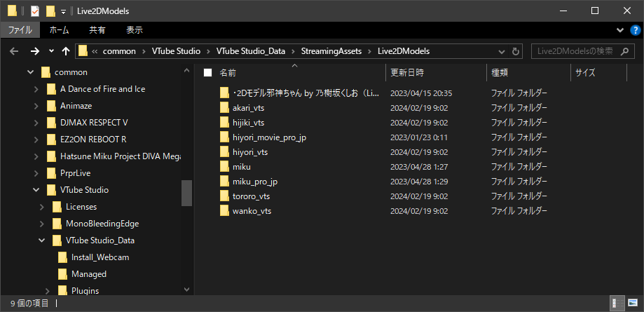 <VTube_Studioの保存先>\VTube Studio\VTube Studio_Data\StreamingAssets\Live2DModels
