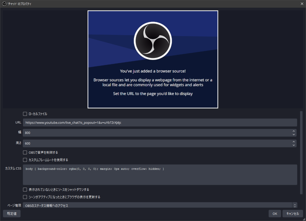 ポップアウトされたブラウザのURLをコピー&ペーストします。