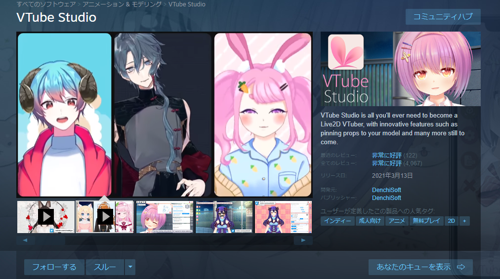 ダウンロード: https://store.steampowered.com/app/1325860/VTube_Studio/