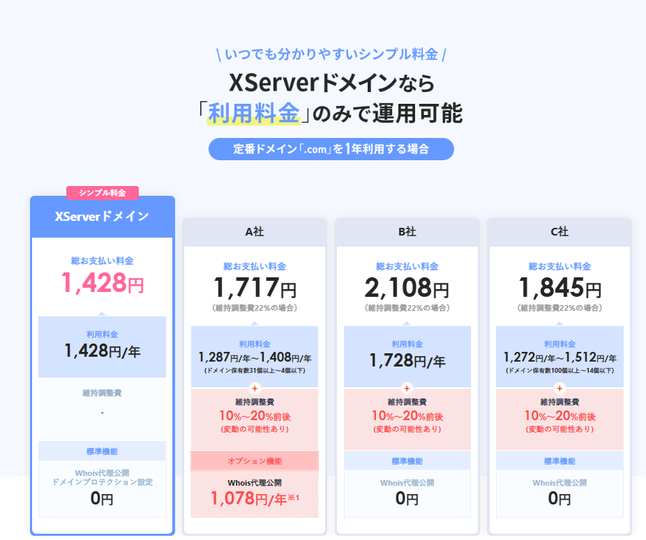 Whois情報公開代行も基本料金に含まれているのがとても良いですね。