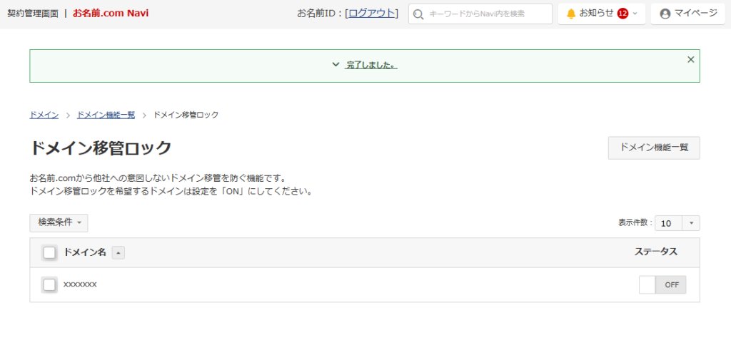 お名前.comの管理画面に入り、ドメイン移管したいドメインを選択してください。