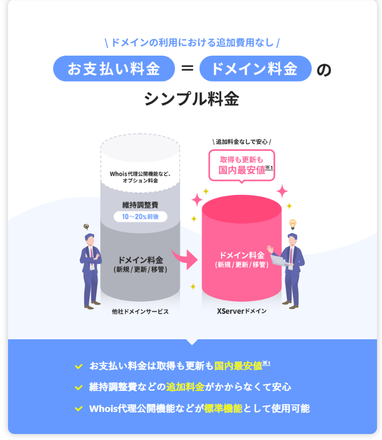 Xサーバの料金形態は利用料金=ドメイン料金なのでとてもシンプルです。