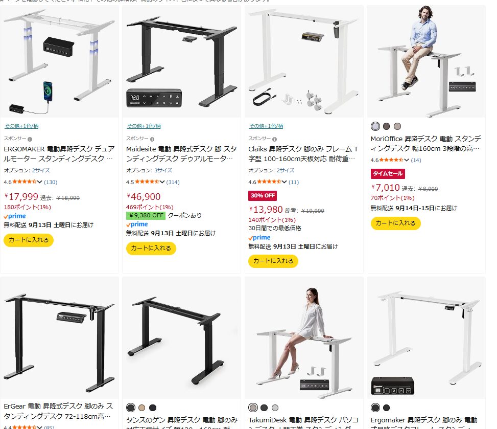 ニトリなど大手家具メーカにも昇降デスク取り扱いあります。