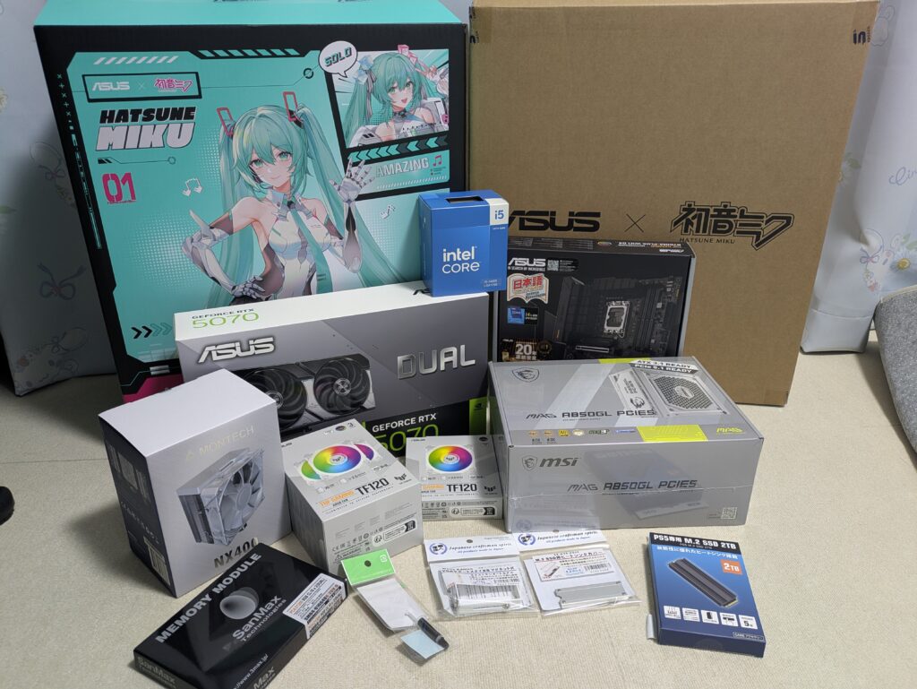 RTX 4060Ti 16GBと悩みましたが性能差が5070のほうが良さそうなのでこちらにしました。