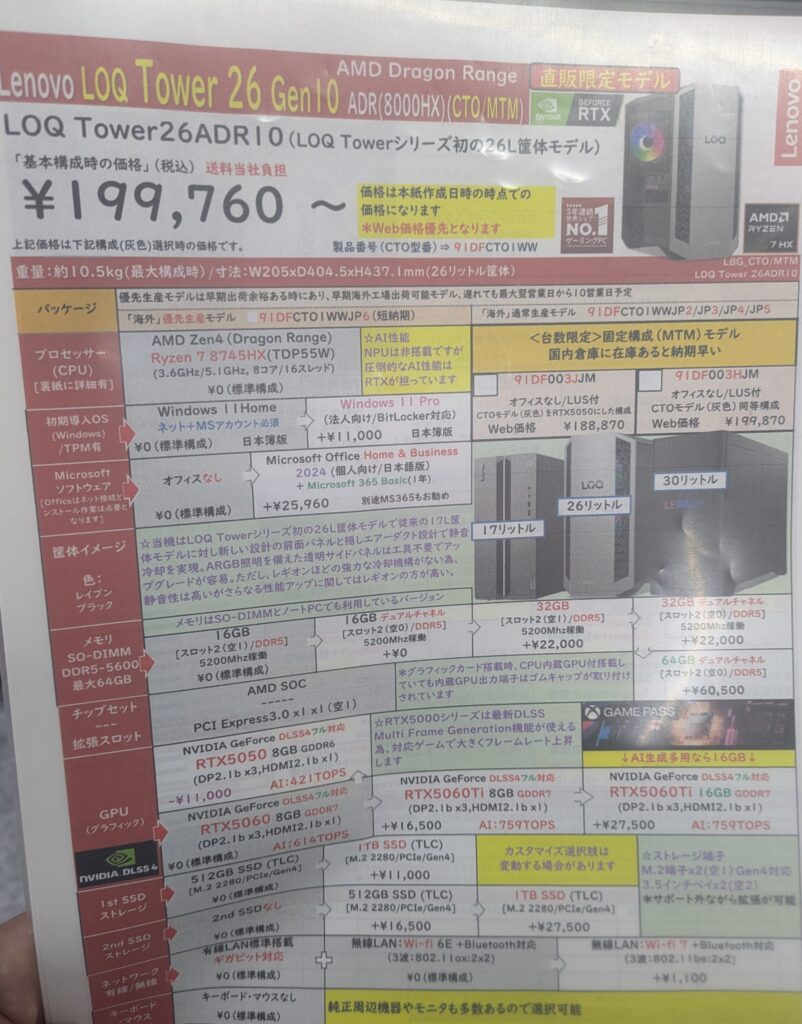 ヨドバシではネットでスペックを自分で選べるカスタムPCが代理発売されています。