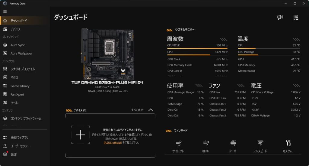 マザーボードはTUF GAMINGですし、専用bios画面までありとても惹かれます。余裕あったら一式揃えたいくらい魅力的です。